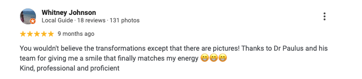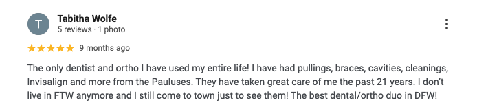 Our patients are our number one priority! Check out what they have to say about their experiences at Paulus Dental & Paulus Orthodontics and if you have any questions, please call our office and we will be happy to assist you.